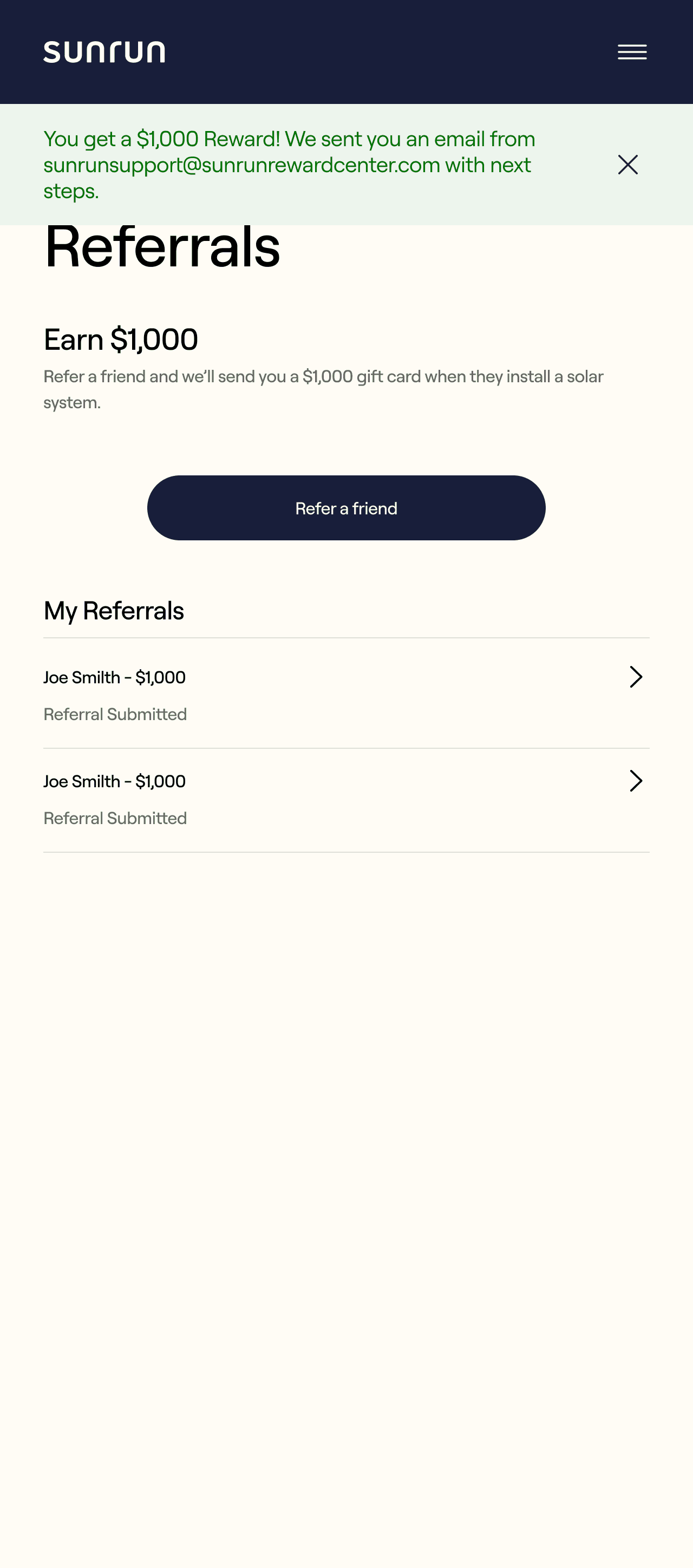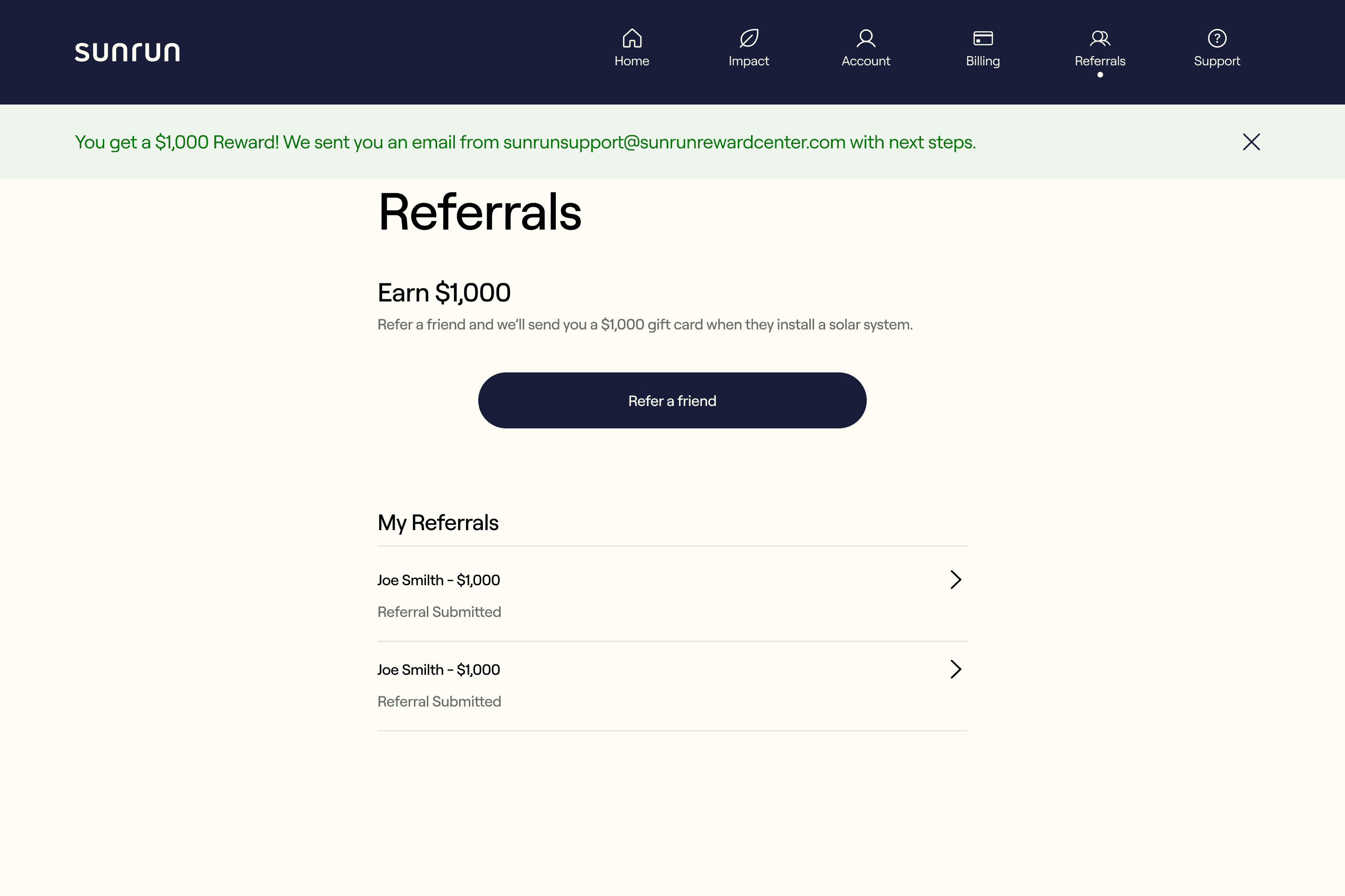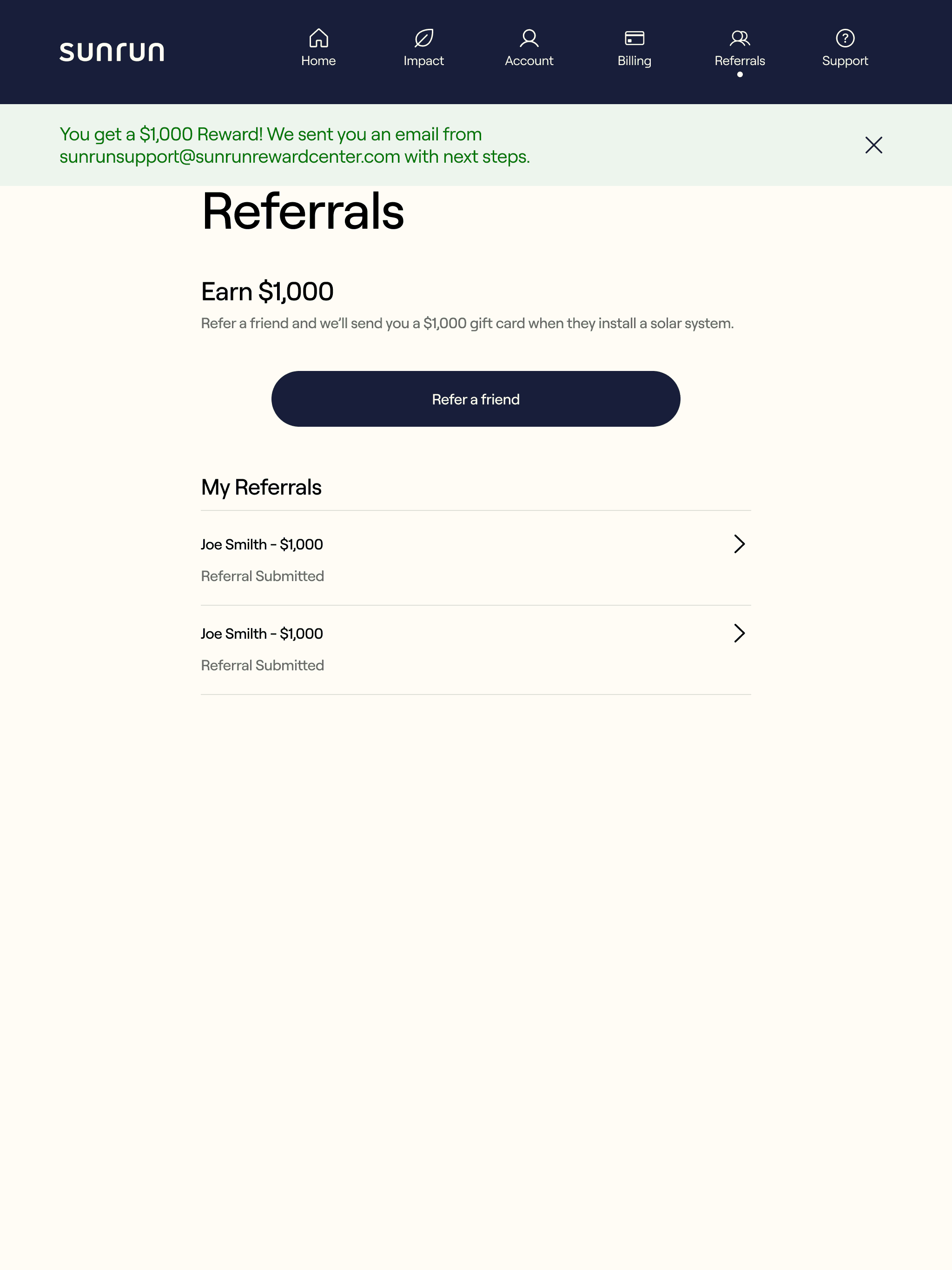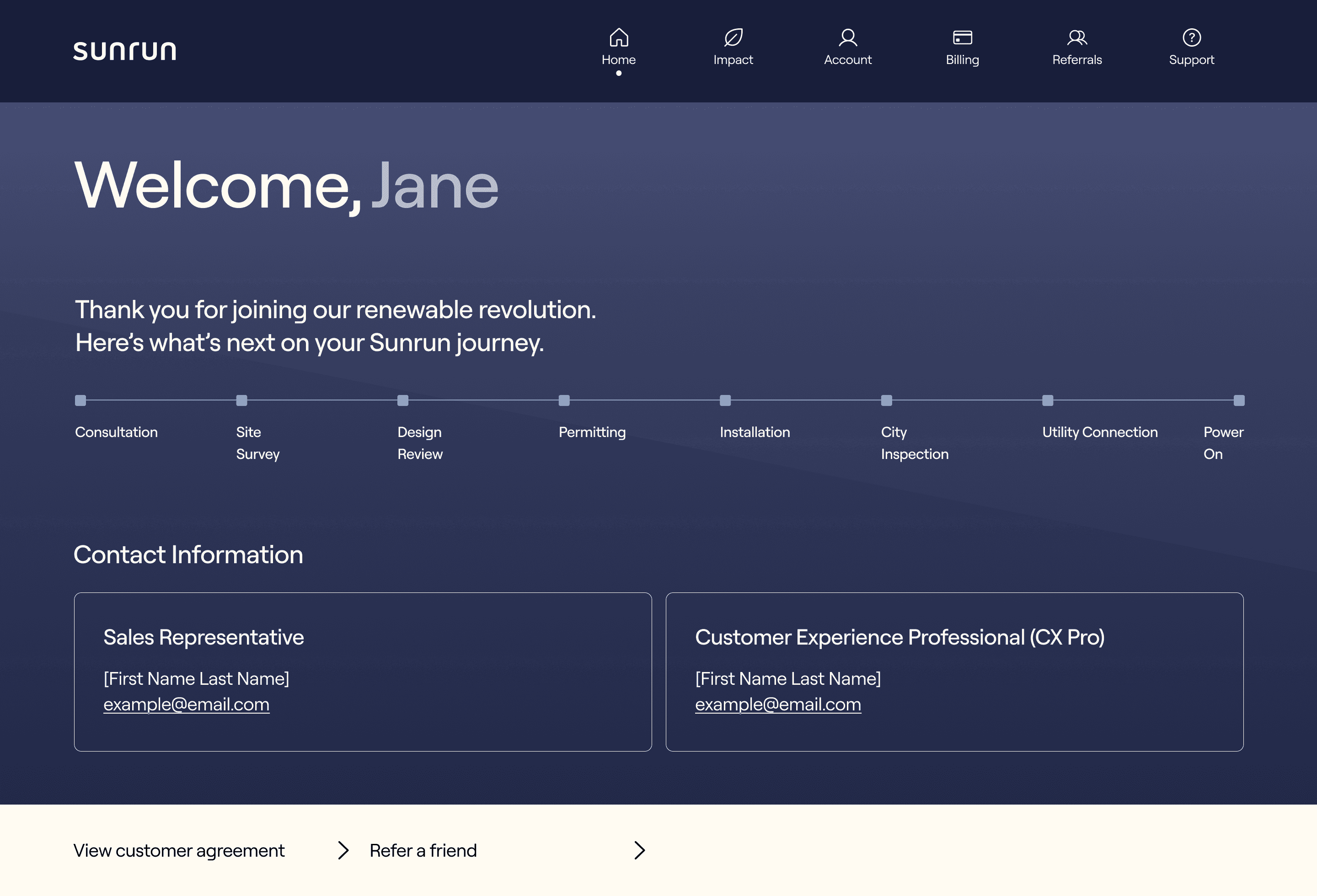 Shows savings, energy production, and carbon footprint reduction, making Sunrun’s value tangible and motivating engagement.